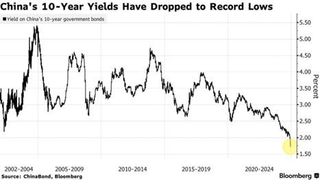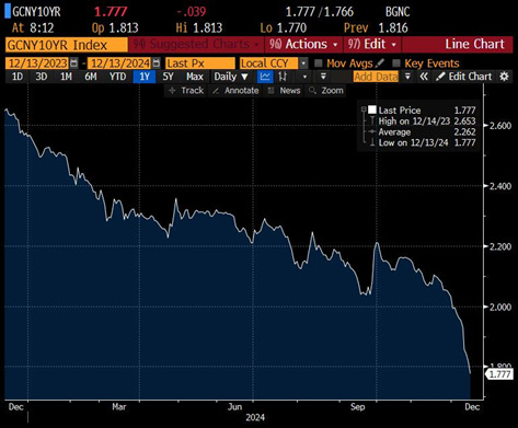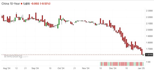 Tới 31/12/2024, 10yr yield của Trung Quốc đã tiệm cận 1.6%.