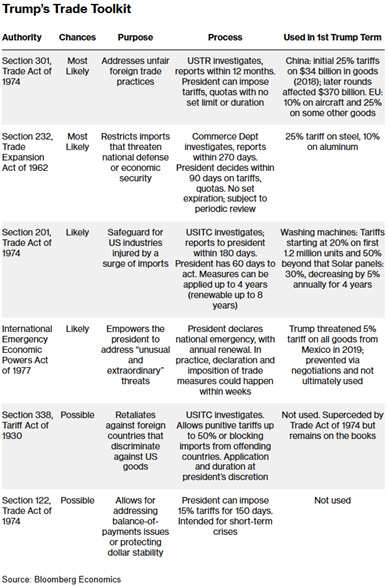 Trong một cuộc phỏng vấn trên TV, president-elect Trump tuyên bố rằng ổng sẽ thực hiện các agenda đề xuất khi tranh cử. Ổng cũng trả lời rằng sẽ không tìm cách sa thải Jay Powell trước khi ông thống đốc này hết nhiệm kỳ. Trump sẽ “áp thuế với các nước Mexico, Canada (25%) cho tới khi nào hai quốc gia này giải quyết xong vấn đề drug và dân nhập cư lậu vào Mỹ”, và Trung Quốc (thêm 10%) ngay từ ngày đầu tiên.