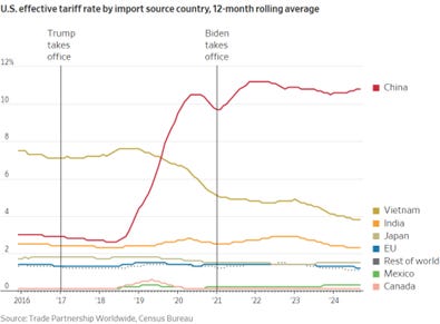 Effective tariff của Mỹ lên hàng nhập khẩu từ Trung Quốc hiện tại đang xấp xỉ 11%.