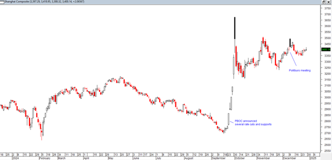 Ngày 9/12, Politburo Trung Quốc họp. Nội dung chung chung quan trọng nhất mà Bộ này thống nhất là hỗ trợ nền kinh tế, trong đó có chính sách tiền tệ “moderately loose” trong 2025, dù không đưa ra chi tiết cụ thể. Một điều có thể hiểu lờ mờ là Trung Quốc sẽ tăng tỉ lệ nợ để bù trừ lại tác động xấu từ tariff Mỹ. Điều này có thể gây thất vọng với các nhà quan sát phương Tây, vốn quen với hệ thống rõ ràng mạch lạc (còn nhớ TARP năm 2008?) mà chưa quen với hệ thống của các đồng chí cộng sản nói năng lờ mờ không rõ nghĩa. Nhưng điều đấy cũng cho thấy rằng phản ứng của regulators và law makers tại Trung Quốc sẽ không bao giờ nhanh nếu tình hình đòi hỏi – và tình hình đang đòi hỏi.