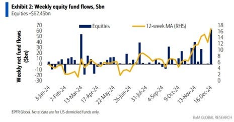 (chart: weekly equity fund flows, tính tới 22/12/2024)