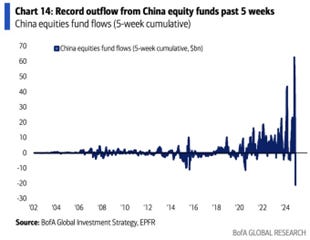 Cái Tepper trade đã nguội xuống, và dòng tiền đã rút khỏi từ thị trường cổ phiếu Trung Quốc tính trong vòng năm tuần đạt mức kỉ lục (xem chart)
