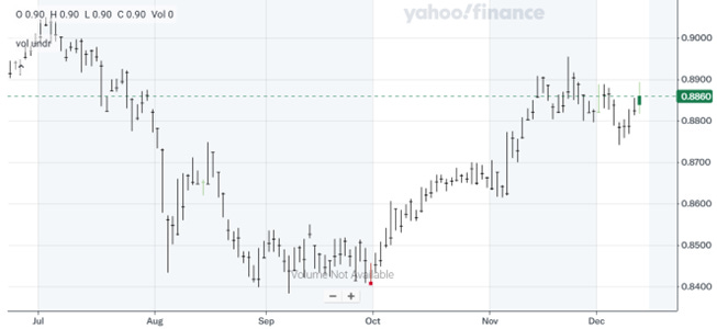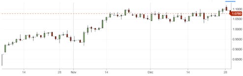Vào cuối năm, cặp tiền này đang trụ vững ở dưới 158, còn 10yr yield có nhích lên nhẹ khỏi khu vực 1.05%. Nền kinh tế nước này đang tăng trưởng mạnh hơn dự đoán chút đỉnh, GDP Q3 tăng 0.3% QoQ (vs dự đoán 0.2%). Công chúng Nhật giờ đang vật lộn với giá cả leo thang, nhất là với thực phẩm. Nhiều thập kỉ không tăng trưởng khiến một bộ phận của nước Nhật đã nên nghèo hơn đáng kể so với các nước phát triển còn lại.