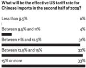 Theo Good Judgment, một dự án thúc đẩy bởi Philip E. Tetlock, tác giả của cuốn sách Superforecasting, đánh giá về tariffs thực tế của Mỹ lên hàng nhập khẩu của Trung Quốc vào H2 2025: